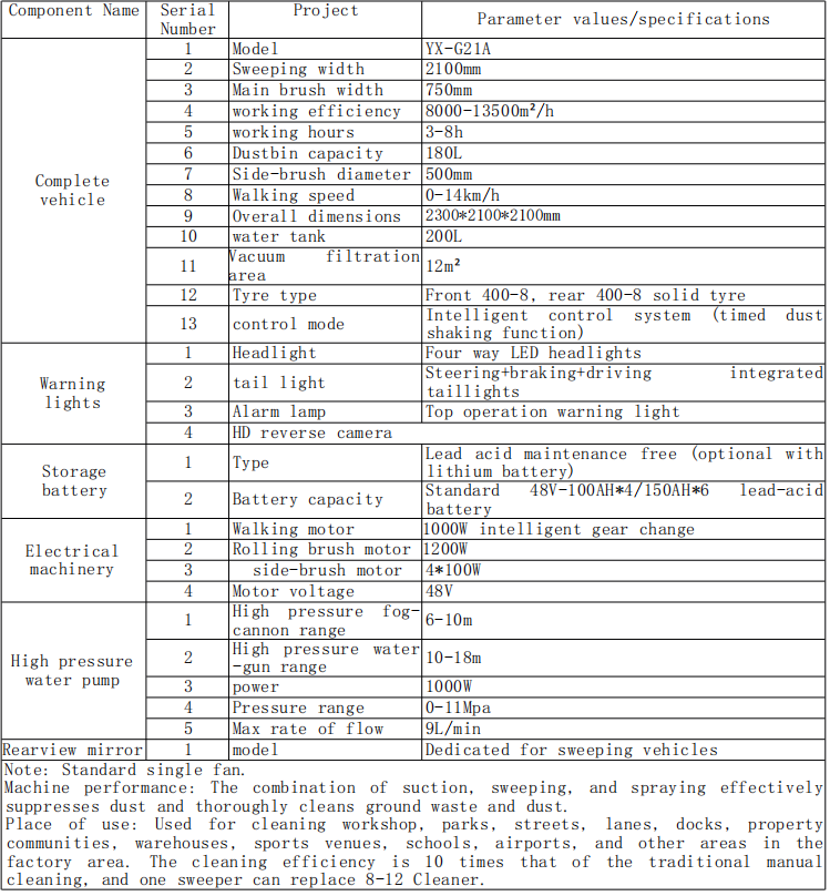 Място на употреба: Използва се за почистване на работилница, паркове, улици, платна, докове, общини на имоти, складове, спортни места, училища, летища и други райони в Факторната зона. Ефективността на почистването е 10 пъти по-голяма от тази на традиционното ръководство, а един чистач може да замени 8-12 почистващо средство