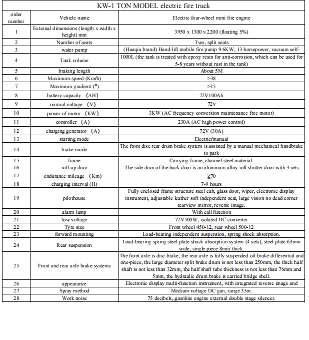 KW-1 тон модел електрически пожарна колаТя е важна добавка към традиционната система за противопожарна защита, особено подходяща за първоначална борба с пожар, тесна среда и ежедневна превенция. Той е екологичен, икономичен и практичен и е подходящ за промоция в общности, живописни места, индустриални паркове и други сценарии.