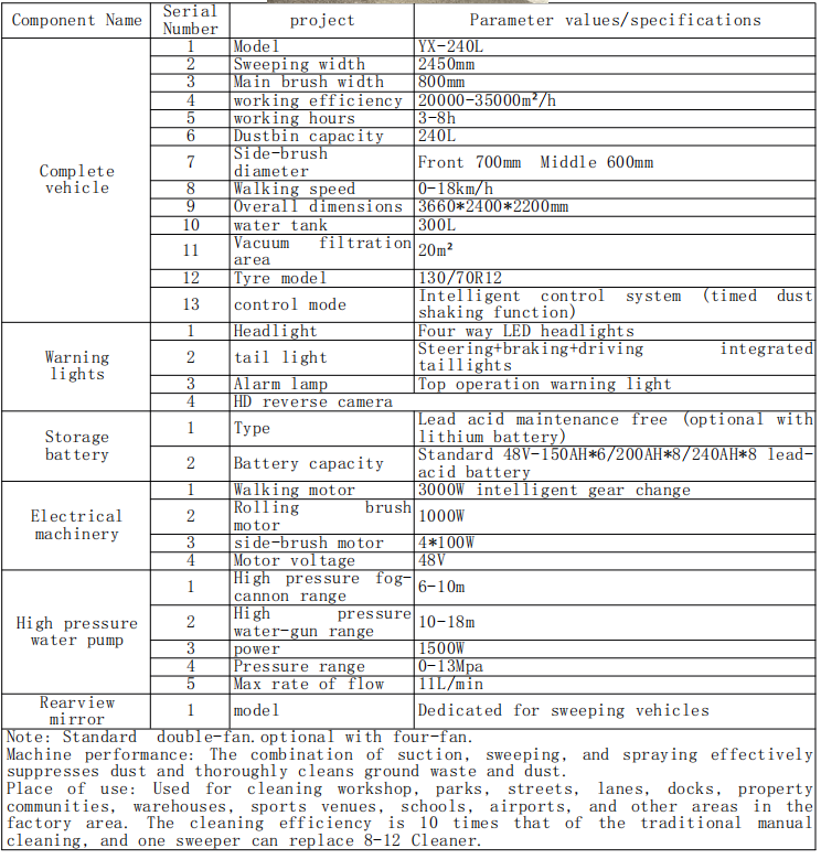 Място на употреба: Използва се за почистване на работилница, паркове, улици, платна, докове, общини на имоти, складове, спортни места, училища, летища и други райони в Факторната зона. Ефективността на почистването е 10 пъти по-голяма от тази на традиционното ръководство, а един чистач може да замени 8-12 почистващо средство.