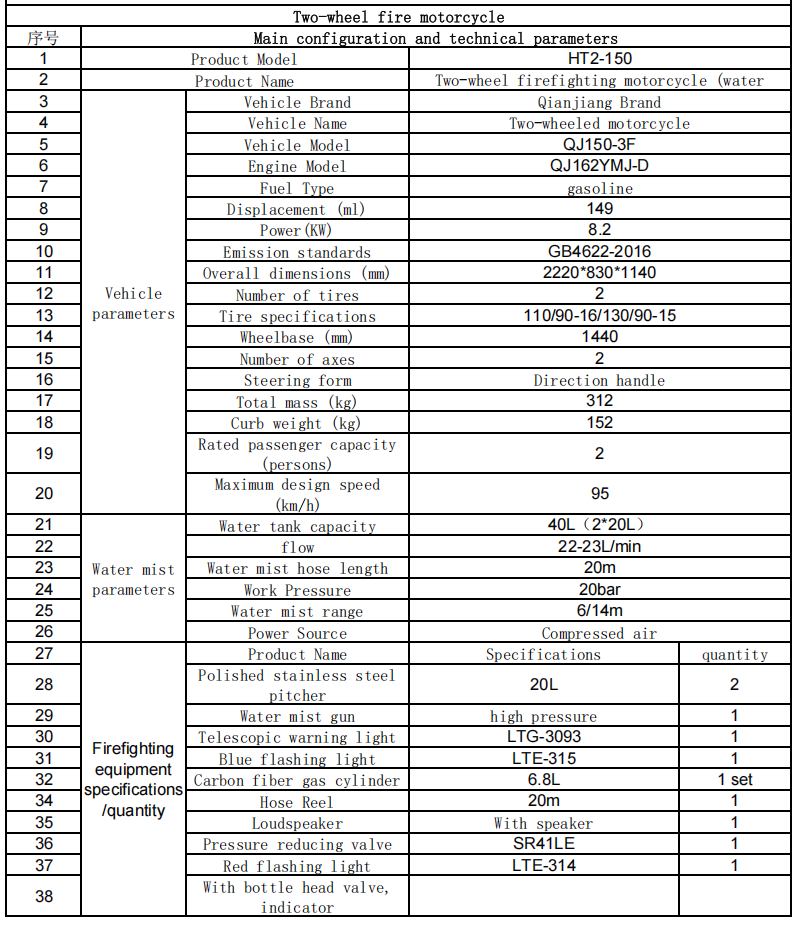 Тялото на превозното средство е малко (обикновено около 2 метра и ширина около 0,8 метра) и лесно може да се пресече през тесни улици, алеи в стари градски райони, пешеходни улици, живописни планински пътища, градски села и други райони, до които големите пожарни автомобили не могат да достигнат, решавайки проблема с покритието на пожарната защита в „последната миля“.